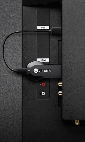 Цифровой медиаплеер фирмы Google, предназначенный для воспроизведения потокового видео- или аудиоконтента с помощью Wi-Fi из Интернета или из локальной сети (LAN). Устройство представлено 24.07.2013 г. в США (по цене $35). Физически представляет собой небольшое устройство размером чуть больше флешки (Flash Drive), которое вставляется в HDMI-разъём телевизора и позволяет транслировать контент (Content) со смартфона, планшета или ноутбука на большой экран. Chromecast работает с iPhone®, iPad®, мобильными устройствами Android, а также с компьютерами Mac®, Windows® и Chromebook.