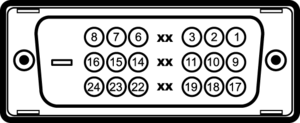 Стандарт на интерфейс (Interface) и соответствующий разъём DVI (Смотри фото), предназначенный для передачи видеосигнала на цифровые устройства отображения, такие как жидкокристаллические мониторы (LCD Monitor) и проекторы. Интерфейс DVI-I включает в себя как цифровой интерфейс, так и аналоговый (VGA). Разновидности DVI: DVI-A (только аналоговая передача), DVI-I (аналоговая и цифровая передача), DVI-D (только цифровая передача). С помощью специального переходника к DVI-I можно подключить монитор на ЭЛТ (CRT).