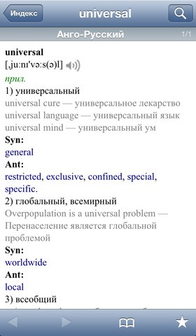 Приложение для iPhone, iPod touch и iPad для просмотра словарей формата StarDict и Lingvo DSL. Среди возможностей: