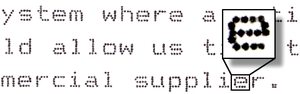 Последовательное ударное матричное печатающее устройство. Последовательность символов формируется при помощи одного или двух вертикальных рядов игл (молоточков), переносящих («вбивающих») краситель с ленты на бумажный носитель. Головка принтера обычно оснащается 9, 18 или 24 иголками. Пример 9-иголочного принтера (при увеличении):