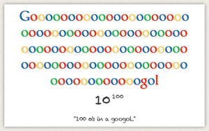 Число, представляющее собой единицу со 100 нулями, на письме выражаемое как 10100. Введено американским математиком Эдвардом Каснером (Edward Kasner, 1878–1955). Согласно утверждениям, данное название придумал его девятилетний племянник Мильтон Сиротта (Milton Sirotta). Это же слово дало жизнь названию Google (оба слова произносятся одинаково). От него произошло число «гуголплекс» (googolplex), которое представляет собой 10 в степени гугол.