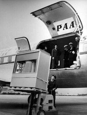 Фото 1: Загрузка первого жёсткого диска в 5 МБ в самолёт PanAm (1965 г.).