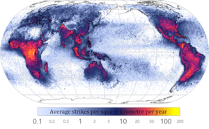 Рисунок: Frequency of Lightning Strikes Around the World.