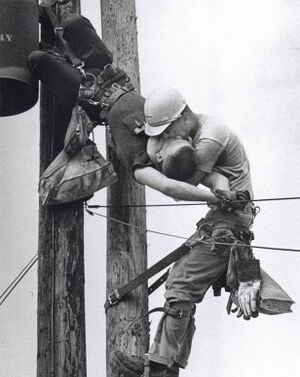 Фото: "The Kiss of Life". This iconic photo shows a utility worker receiving mouth-to-mouth after being electrocuted. He survived. (1967).