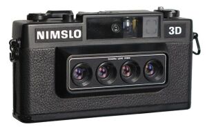 Четырёхлинзовая (четырёхобъективная) плёночная фотокамера, выпускавшаяся в 1980-е годы и позволявшая делать стереофотографии (3D-фотографии). Позволяла делать одновременно четыре снимка. Из-за расположения объективов на некотором расстоянии друг от друга снимки получаются с определённым смещением. В результате их объединения получается трёхмерная картинка, для просмотра которой не нужны очки и какие-либо иные дополнительные приспособления. Анимационный эффект на фото достигается за счёт возможности камеры делать одновременно четыре снимка (на обычную 35-мм плёнку). Трёхмерное изображение видно только после совмещения полученных кадров в одном GIF-файле. В настоящее время технологии фотокамер Nimslo используются и другими компаниями.