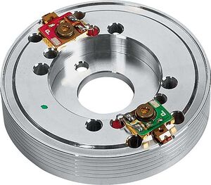 Фото: Диск блока вращающихся головок формата VHS (видеомагнитофон Panasonic NV-G7). Изображение: Stereo&Video.