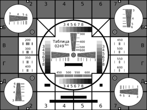 Рис. 2. Советская чёрно-белая испытательная таблица (TIT-0249BIS, ТИТ-0249бис).