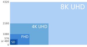 Телевидение класса Ultra HDTV предполагает разрешение 4K (3840×2160 точек, или в четыре раза больше по сравнению с Full HD), и 8K (7680×4320 точек, или в 16 раз больше, чем Full HD). На начало 2013 года экспериментальные модели телевизоров с UHD-разрешением выпустили фирмы Panasonic, Samsung и Westinghouse. Чтобы явно заметить все преимущества 4K, требуется экран с диагональю более 80 дюймов.