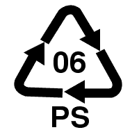 Факт применения полистирола в продукции может иногда отображаться латинскими буквами «PS» рядом с символом рециркуляции.