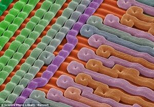 Фото: Поверхность кремниевого микрочипа под электронным микроскопом.